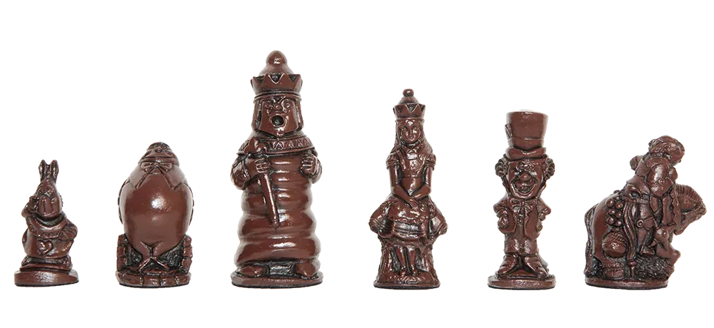 Alice in Wonderland Chess Pieces - Brown & Natural
