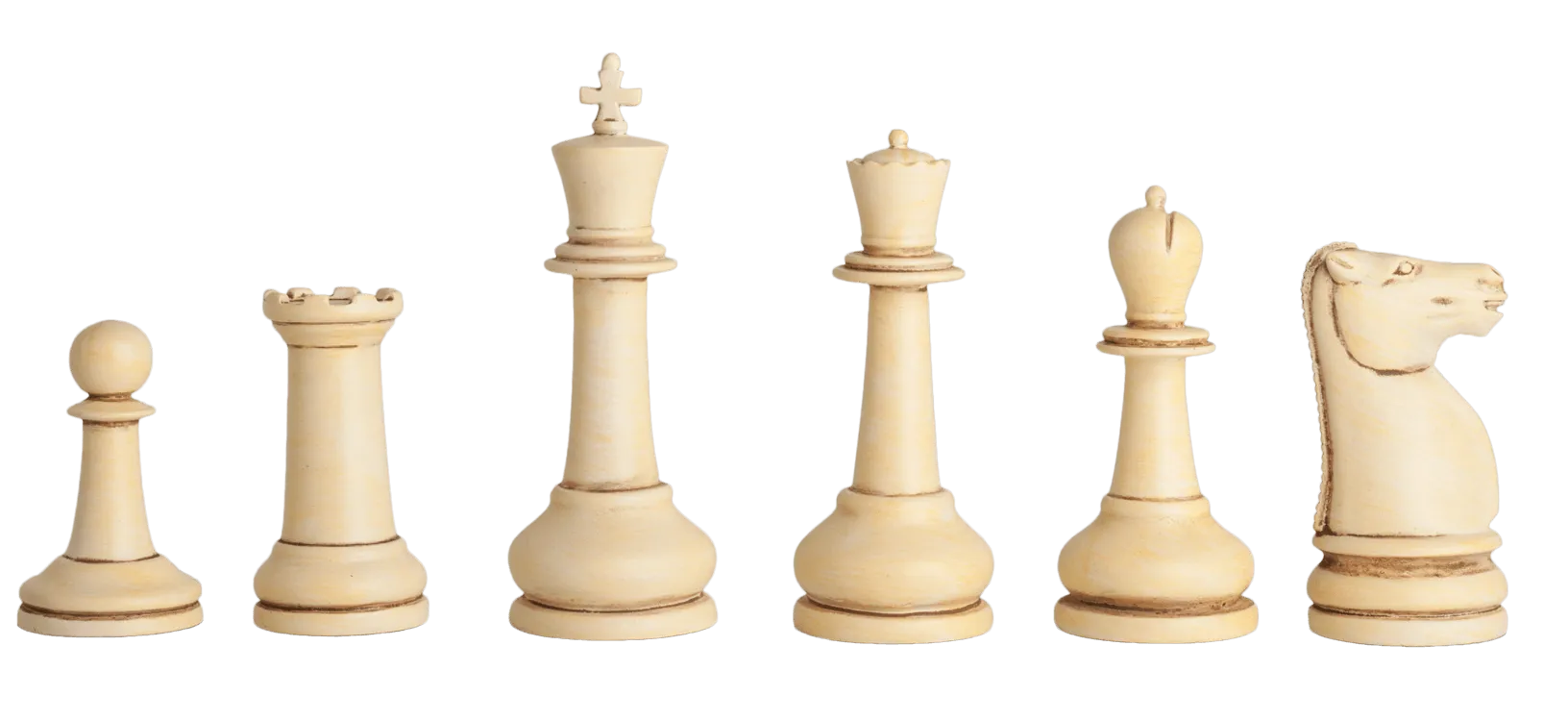 Our production is a detailed replica of an original Bone set manufactured around 1850 by Jaques and purchased at a 1990s London auction. English chess master, Howard Saunton, promoted this set at the first international chess tournament in 1851. It's clearly distinguishable pieces soon became the competition standard known as the 'Staunton' set.