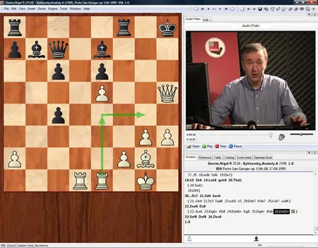 Instead of changing everything at once he proposes that you start out with a Queen's Pawn Opening such as the London System, Torre Attack or Colle System and then build on these openings step by step. After playing 1.d4 and 2.Nf3 you will gradually introduce lines with 3.c4 whilst acquiring an understanding of the middle games this will lead to. Davies makes specific recommendations about which variations you should play and the order in which they should be introduced. In the final stage of their repertoire development players may wish to switch to 1.d4 and 2.c4, but with the groundwork having been properly laid. At the end of the DVD Davies explains how to go about this and discusses some of the issues involved.