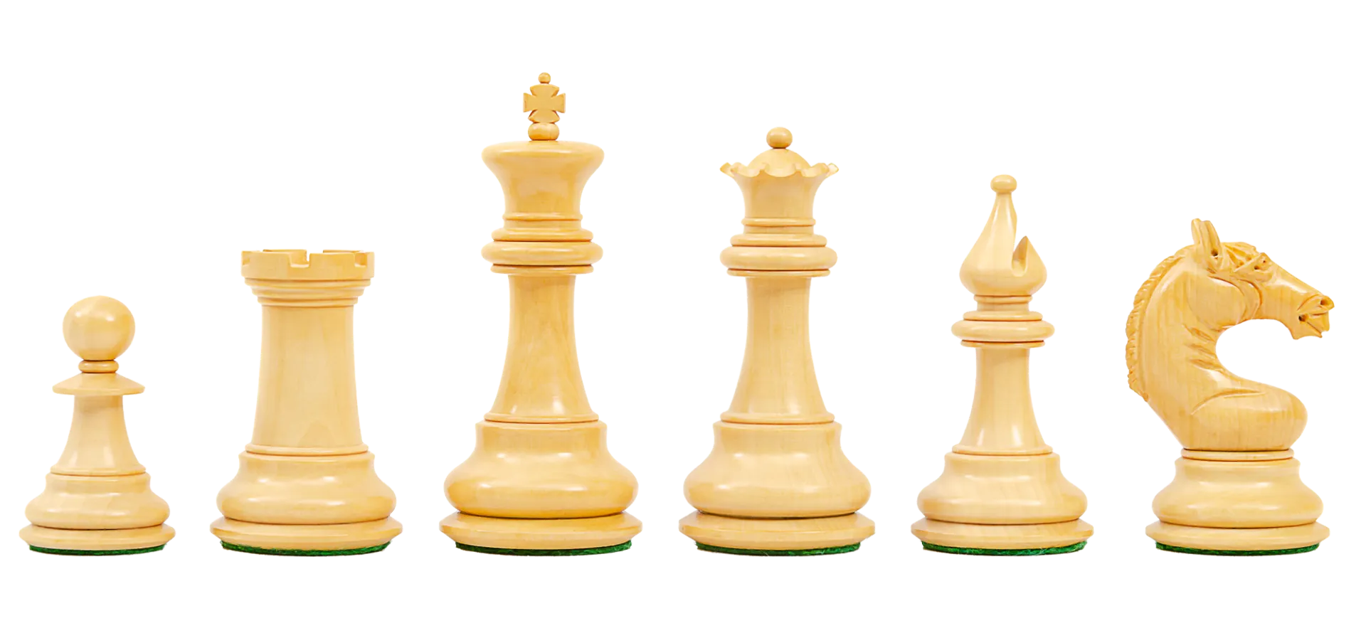 The Chess pieces are hand carved by our master artisans and crafted out of the highest grade woods. The Chess pieces are heavily weighted with House of Staunton English Leather basepads on the King and luxurious billiard cloth base pads on the other Chess pieces, with a beautiful finish. As with all of our Chess sets, the Exeter Series exemplifies a perfect combination of distinct beauty and functionality. It has been designed to withstand the rigors of practical play while maintaining an elegance which has become the hallmark of a House of Staunton chess set. The design, quality and craftsmanship of this set is UNMATCHED by any set of Chessmen in its price range. Nothing even comes close!