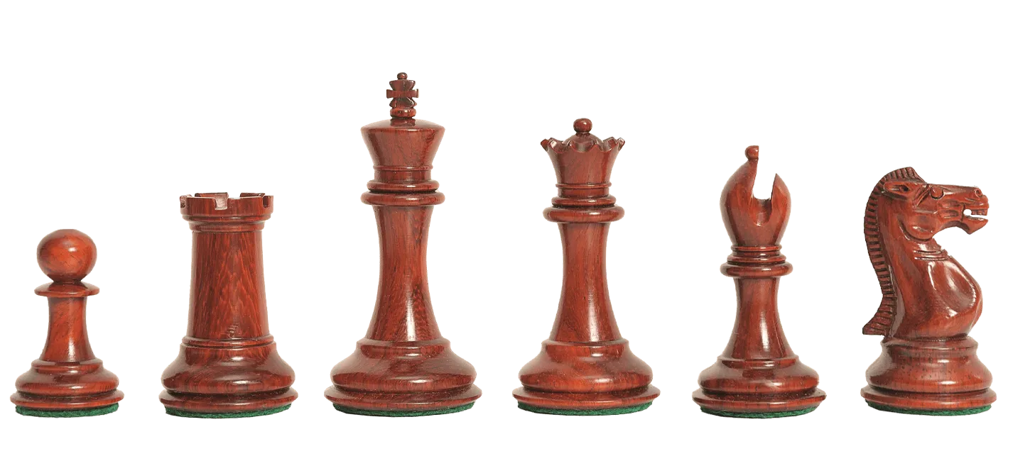 To pamper you, The House of Staunton is proud to offer the Collector Series Luxury Chess set. This full library-sized Chess set features a 3.0" King with a 1.5" diameter base. The Chess pieces are hand carved by our master artisans and crafted out of the highest grade woods. The Chess pieces are heavily weighted with gold embossed English Leather base pads under the Kings, luxurious billiard cloth base pads on the other Chess pieces and a beautiful finish. The Collector Series Luxury Chess set has been crafted to replicate the design and proportions of the original Staunton pattern Chessmen, registered by Nathaniel Cooke in March of 1849 and first manufactured by Jaques of London in September 1849. The distinctive feature of this set is the open-mitered Bishop and Knight design, which is modeled after the noble steeds from the Greek Parthenon (Elgin Marbles.)