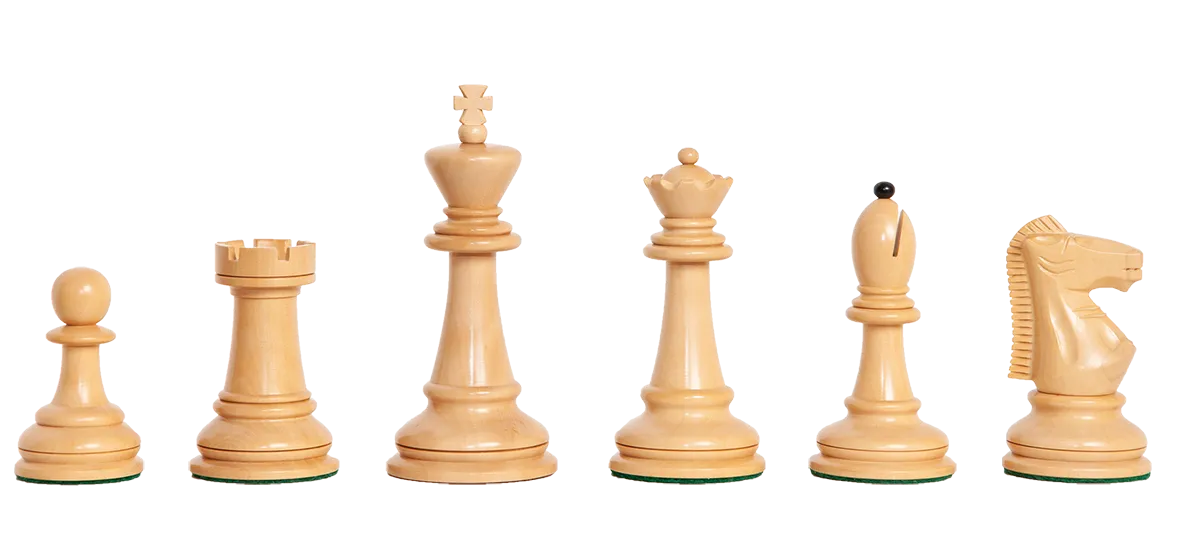 The House of Staunton is proud to offer the Skopje Olympiad Series Chess set. A full tournament-sized Chess set, it features a 4.4" King with a 1.875" diameter base. The Chess pieces are hand carved by our master artisans and crafted out of the highest grade woods. The Chess pieces are heavily weighted with luxurious billiard cloth base pads and a beautiful finish.