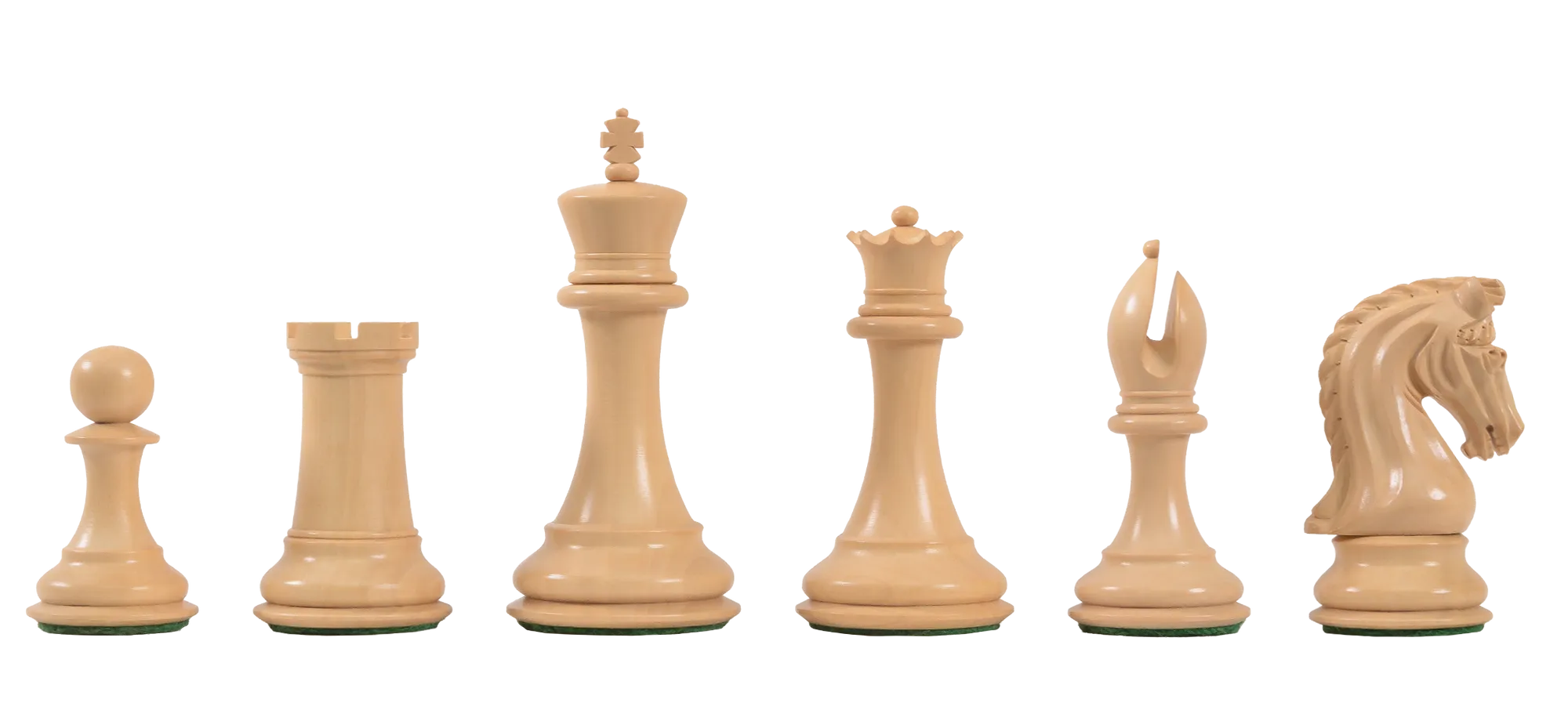 The 2015 Sinquefield Chess pieces are a full-tournament sized Chess set and features a 3.8" King with a 1.7" diameter base. They are hand carved and crafted by our master artisans and includes a majestic Imperial Collector Knight. With it's downturned head, flowing mane and aggressive facial expression. this is one of the finest Knights ever to grace the 64 square battlefield. The Chessmen are new and each set consists of 34 Chessmen, including four Queens, a standard that was introduced by The House of Staunton over 10 years ago.The Chess Set comes with an original manufacturer's plaque indicating the production number, with an adhesive backing that would allow it to be affixed to the underside of a Chess box.