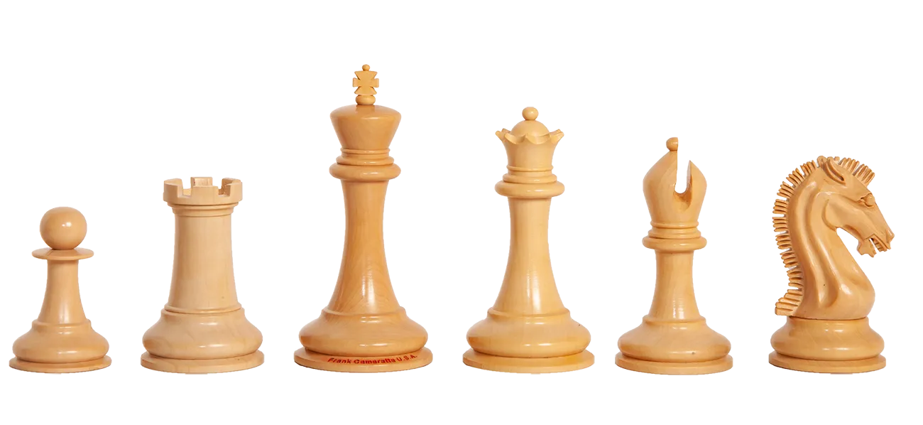 The House of Staunton is proud to offer another masterpiece - Camaratta Signature Series Cooke Luxury Chess Set! Combining the Staunton perfection of the Cooke set with the Maestro's Knight design from the Craftsman set, these Chessmen showcase the Maestro's passion for Greek architecture, as well as the highest standard of the Staunton pattern.