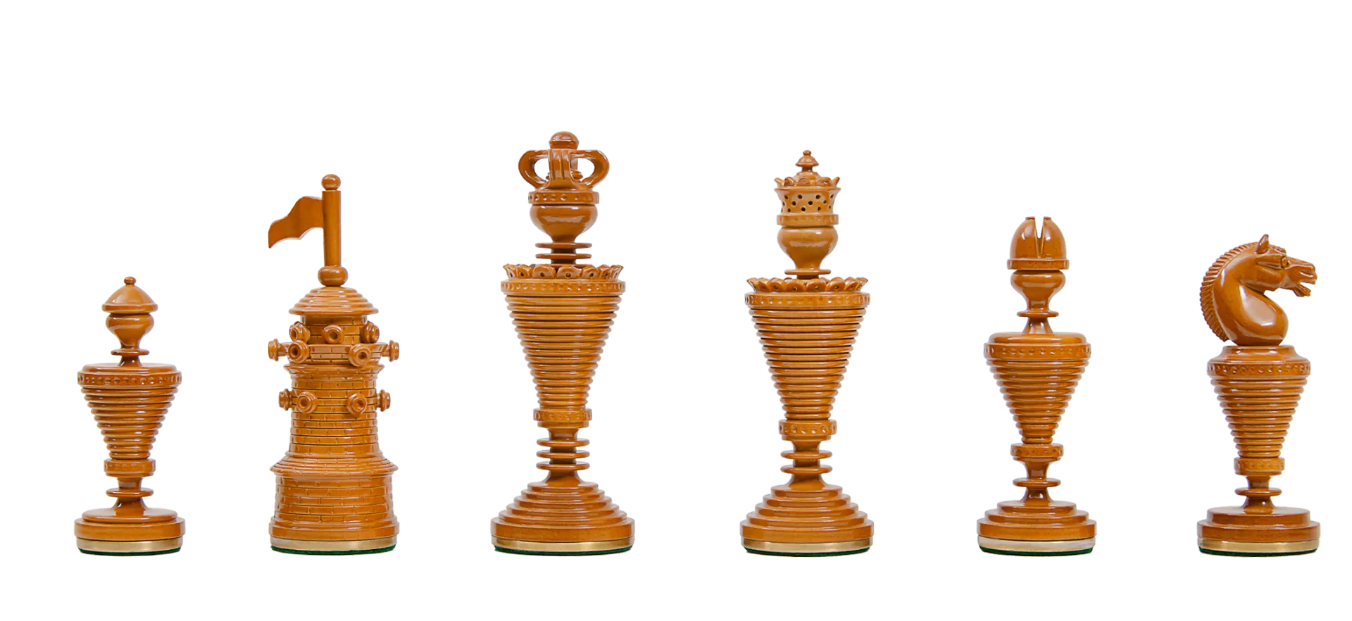 "Crafted to replicate the exquisite design and detail of the Circa 1800 Anglo-Dutch Wood Chessmen from the renowned workshops of George Merrifield and Thomas Lund."