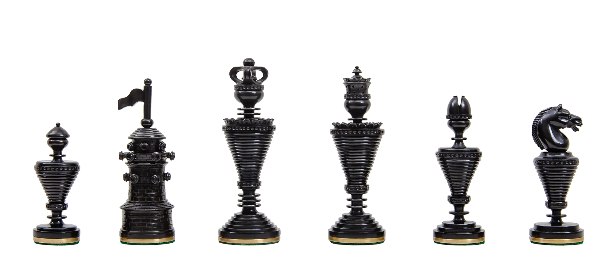 Between the late 1700s and the mid-1800s, many sets from Germany and the Netherlands found their way into the English market. These included the more delicate Selenus designs, among others, that showed elaborate craftsmanship, but lacked board presence and stability.