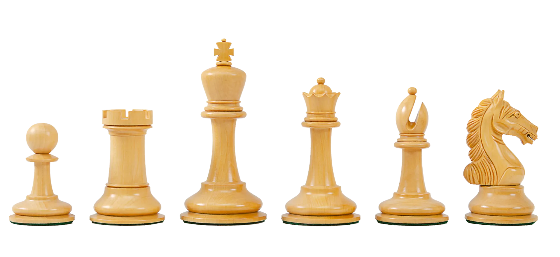 The House of Staunton is proud to offer the Aversa Series Chess set. A full tournament-sized Chess set, it features a 4.0" King with a 1.875" diameter base. The Chess pieces are hand carved by our master artisans and crafted out of the highest grade woods. The Chess pieces are heavily weighted with luxurious billiard cloth base pads and a beautiful finish.