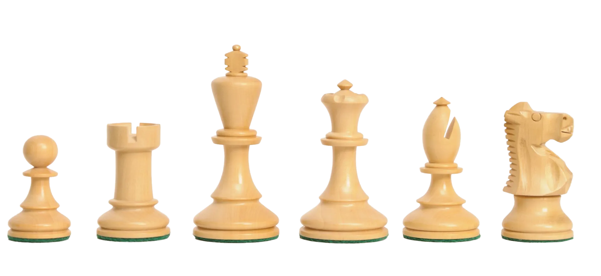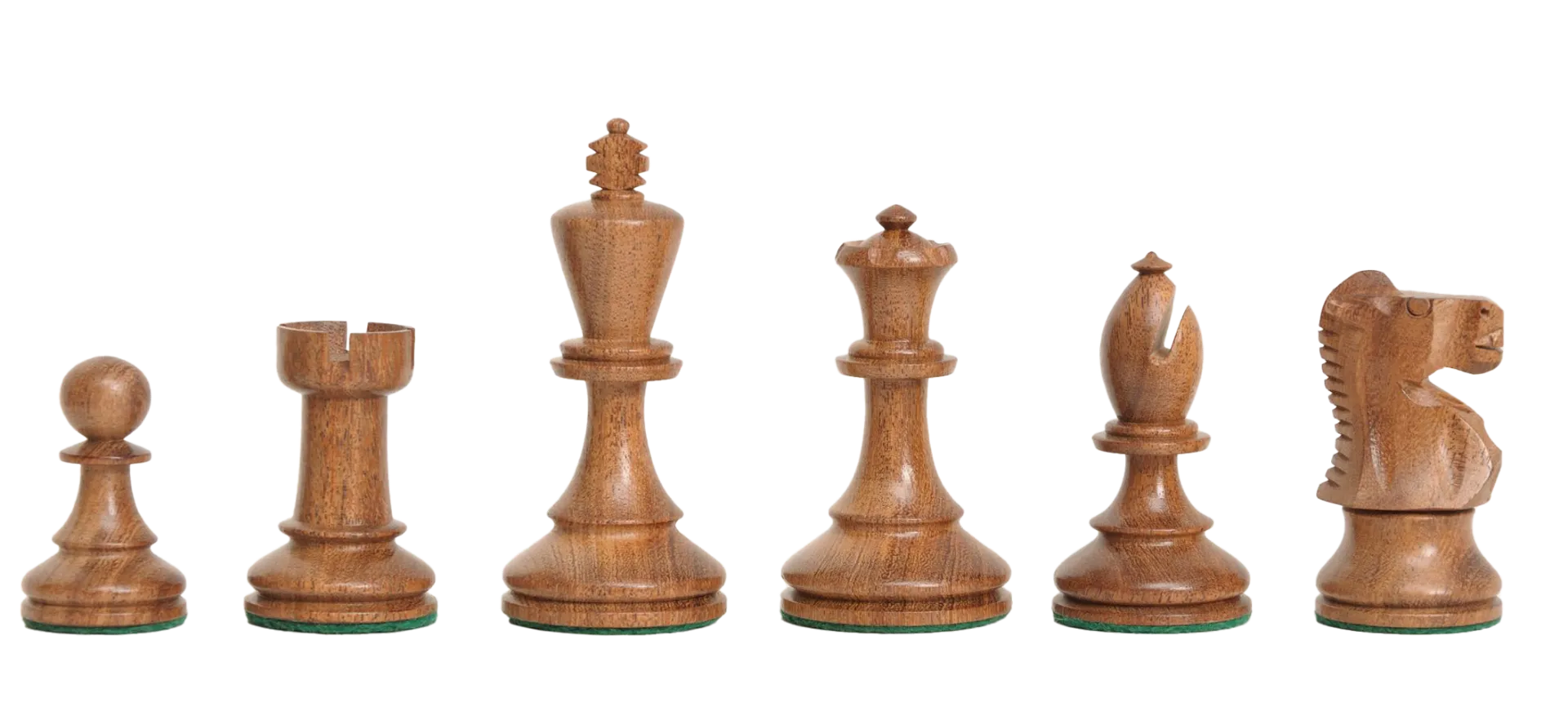 The House of Staunton is proud to offer the B.H. Wood Series Chess set. A full tournament-sized Chess set, it features a 3.75" King with a 1.65" diameter base. The Chess pieces are hand carved by our master artisans and crafted out of the highest grade woods. The Chess pieces are heavily weighted with luxurious billiard cloth base pads and a beautiful finish.