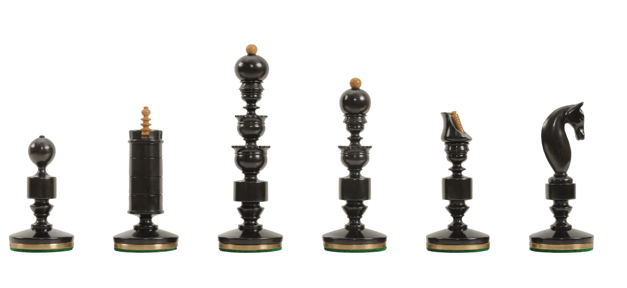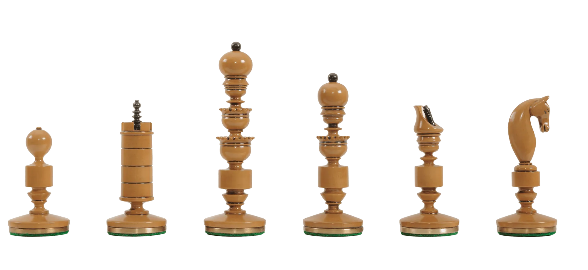The Biedermeier chessmen, like our other reproduction Victorian era Playing sets, have been reintroduced with those special touches that only the Maestro can add, and arevpart of the Camaratta Pre-Staunton Signature Series.