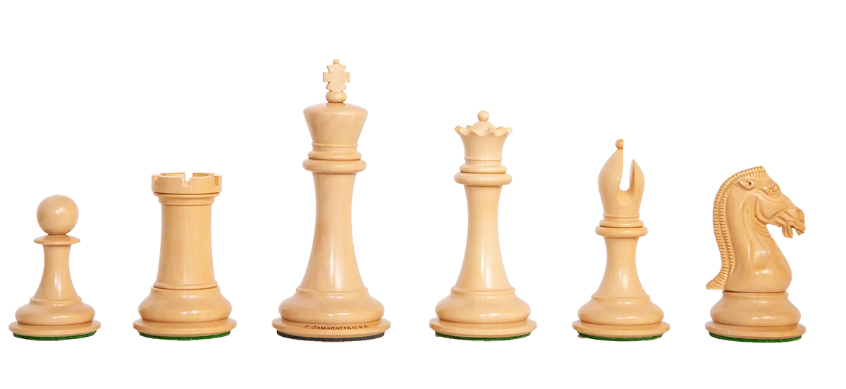 To pamper you, The House of Staunton is proud to offer the Selene Collector Series Chess set from the Camaratta Collection. This full-tournament sized Chess set features a 4.4" King with a 2.0" diameter base. The Chess pieces are hand carved by our master artisans and crafted out of the highest grade woods. The Chess pieces are heavily weighted with embossed English Leather base pads with the Frank Camaratta logo under the Kings, luxurious billiard cloth base pads on the other Chess pieces and a beautiful finish.