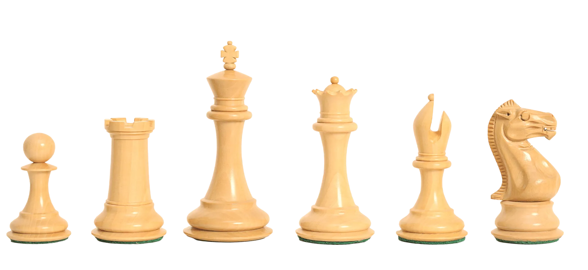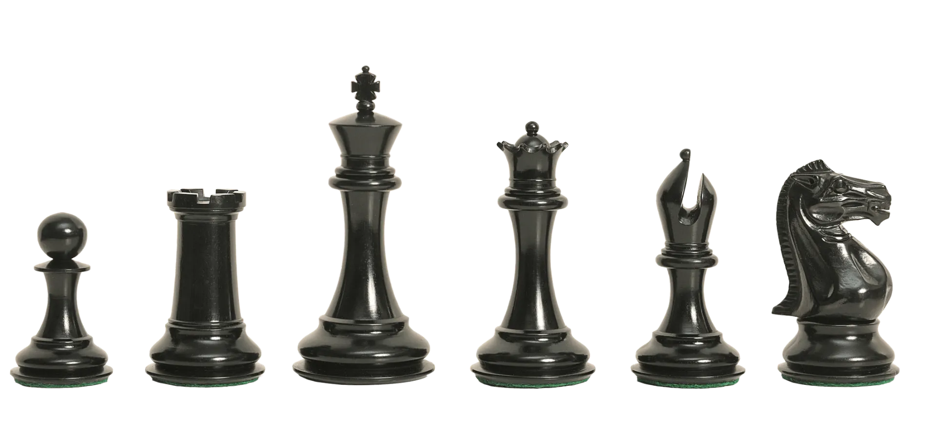 To pamper you, The House of Staunton is proud to offer the Collector Series Luxury Chess set. This full-tournament sized Chess set features. A full tournament-sized Chess set, it features a 4.0" King with a 1.8" diameter base. The Chess pieces are hand carved by our master artisans and crafted out of the highest grade woods. The Chess pieces are heavily weighted with gold embossed English Leather base pads under the Kings, luxurious billiard cloth base pads on the other Chess pieces and a beautiful finish. The Collector Series Luxury Chess set has been crafted to replicate the design and proportions of the original Staunton pattern Chessmen, registered by Nathaniel Cooke in March of 1849 and first manufactured by Jaques of London in September 1849. The distinctive feature of this set is the the open-mitered Bishop and Knight design, which is modeled after the noble steeds from the Greek Parthenon (Elgin Marbles.).