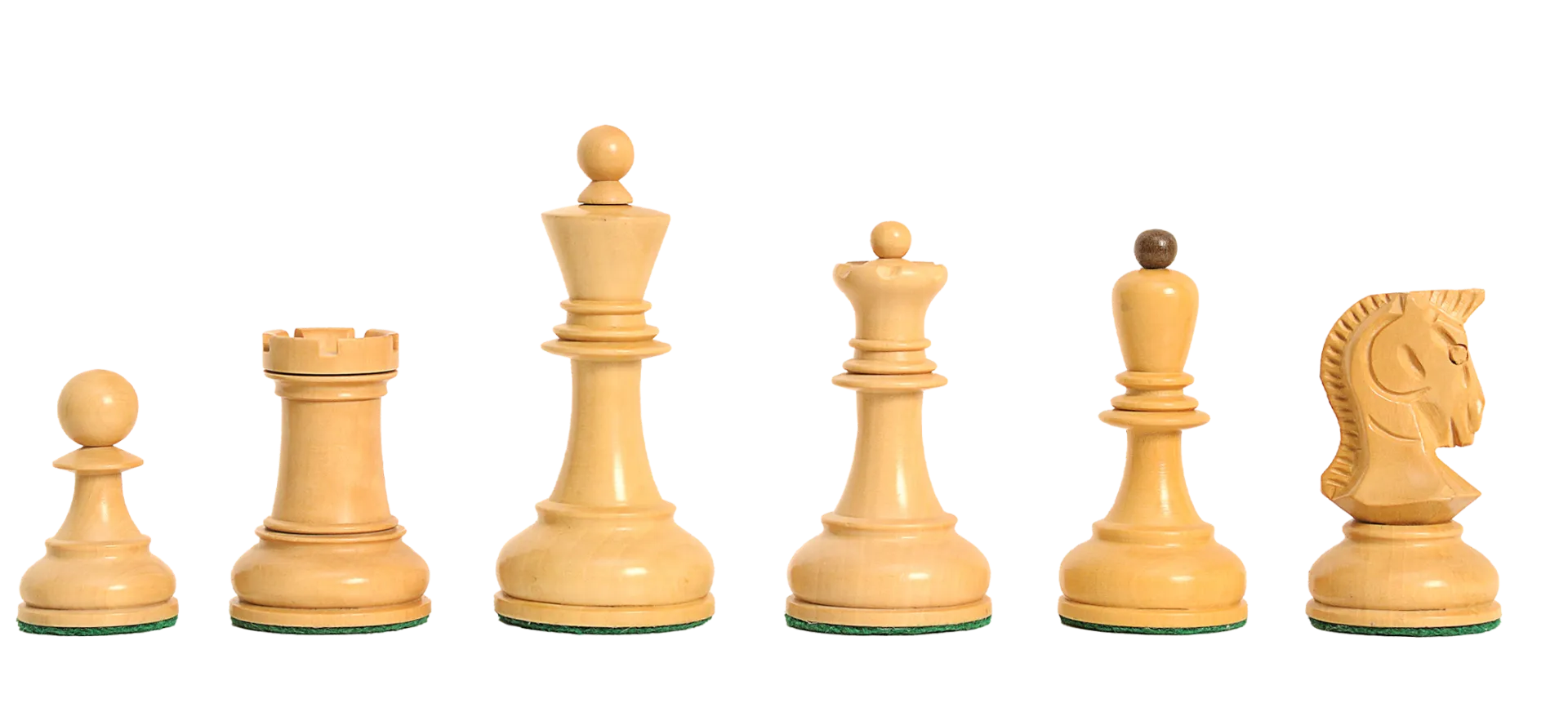 The design of this set is an exact reproduction of the 1970s-era Dubrovnik Chess set, used in the 19th Chess Olympiad in Siegen, West Germany and made popular by the legendary Bobby Fischer, who was often photographed playing with his own set. This Chess set lacks many of the ornate features found in many Chess sets and featured sturdier bases and reinforced collars on all of the pieces, creating a set that will withstand years of use and abuse. The Bishops feature alternate-colored finials, and the King's finials can be easily swapped to match the style of our Zagreb Chess set.