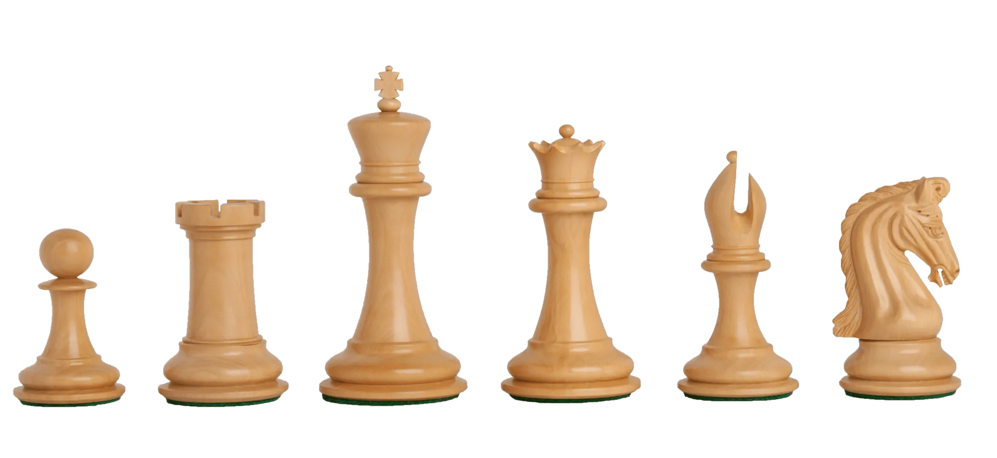 To pamper you, The House of Staunton is proud to offer the Collector Series Luxury Chess set. This full-tournament sized Chess set features. A full club-sized Chess set, it features a 4.0" King with a 1.875" diameter base. The Chess pieces are hand carved by our master artisans and crafted out of the highest grade woods. The Chess pieces are heavily weighted with gold embossed English Leather base pads under the Kings, luxurious billiard cloth base pads on the other Chess pieces and a beautiful finish.