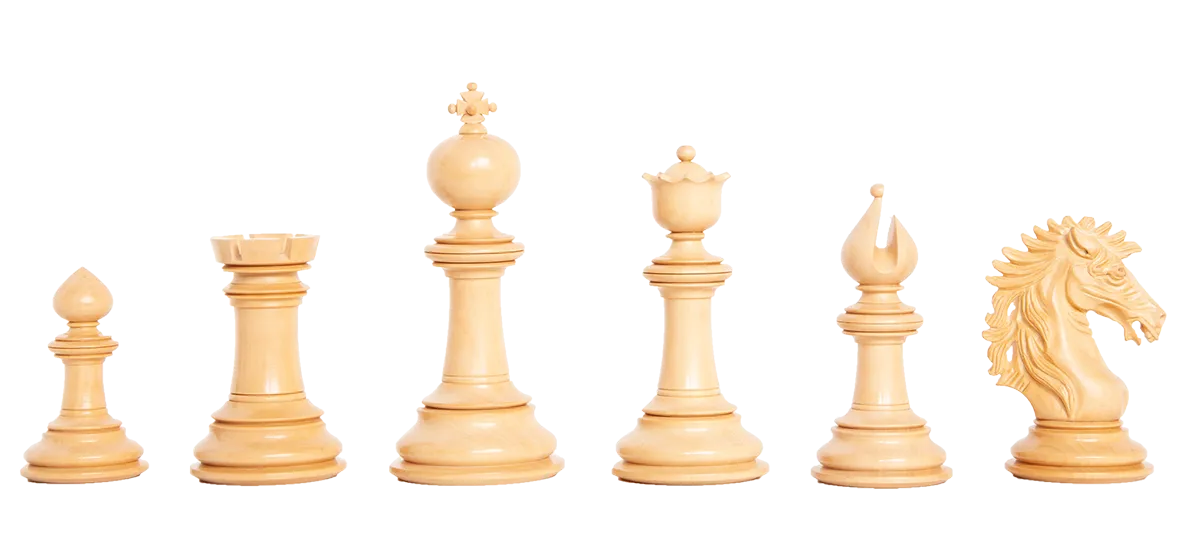 The Chess pieces are hand carved by our master artisans and crafted out of the highest grade woods. The Chess pieces are heavily weighted and feature English Leather Embossed with the House of Staunton Forever Collection Emblem base pads and a beautiful finish. As with all of our Chess sets, Camelot Series exemplifies a perfect combination of distinct beauty and functionality. It has been designed to withstand the rigors of practical play while maintaining an elegance which has become the hallmark of a House of Staunton chess set. The design, quality and craftsmanship of this set is UNMATCHED by any set of Chessmen in its price range. Nothing even comes close! The Chessmen are new and each set consists of 34 Chessmen, including four Queens, a standard that was introduced by The House of Staunton in 1993.