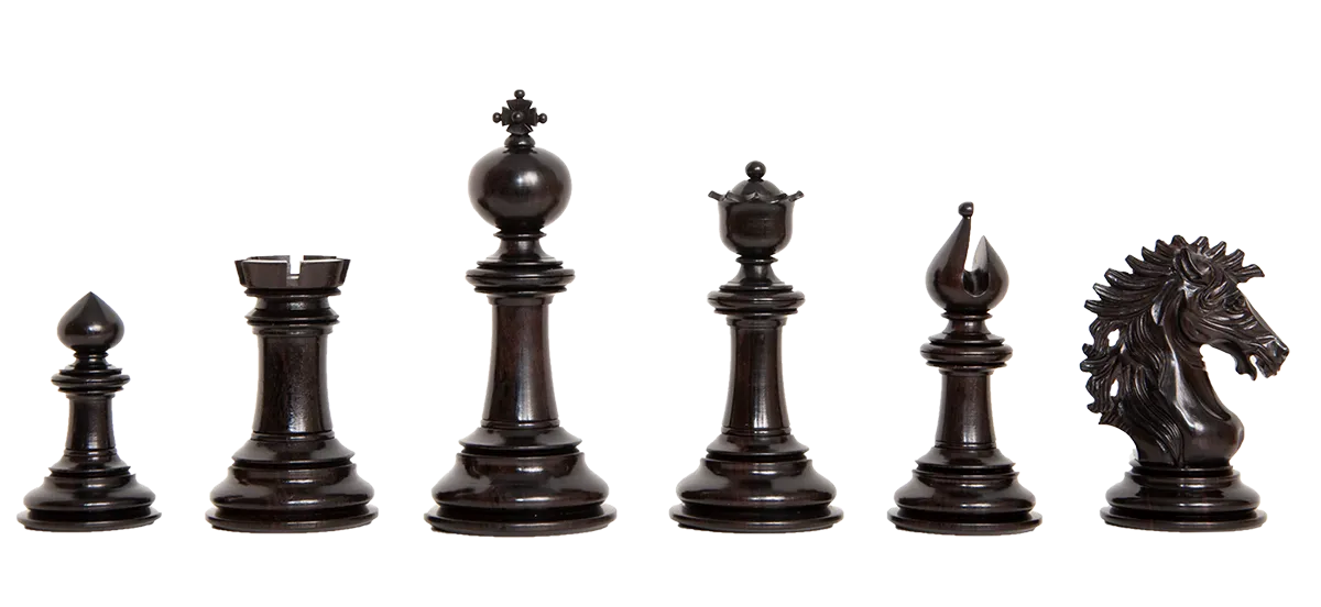 The House of Staunton is proud to offer another masterpiece - The Camelot Series Luxury Chessmen from our our exclusive Forever Collection. In introduces an unparalleled degree of elegance and workmanship into your home. An inspirational modification to the vaunted Staunton design, these chessmen represent a new paradigm in chess set design As with all House of Staunton chessmen, the profiles of the individual chessmen are harmonious. The pieces are carefully weighted for consistency, their weights reflecting their relative value on the chessboard. The individual bases are beveled to create the illusion of floating. Each piece is heavily weighted, beautifully polished and cushioned on green baize base pads. These are qualities only found in House of Staunton chessmen.
