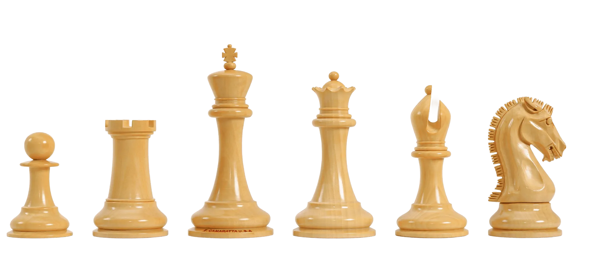 To pamper you, The House of Staunton is proud to offer The Forever St. Louis Chess Club Commemorative Chess Pieces from the Camaratta Collection. These pieces are a full club size set with a 4.4" King and are a larger design of the popular Sinquefield Cup and the St. Louis Rapid and Blitz pieces. These pieces are a full club size with a 4.4" King and are a larger design of the  Sinquefield Cup  and that takes place every year at the St. Louis Chess Club.. This Chess set features a 4.4" King with a 1.9" diameter base and the Chess pieces are hand carved by our master artisans and crafted out of the highest grade woods. The Chess pieces are heavily weighted with embossed English Leather base pads with the Forever logo and a beautiful finish.