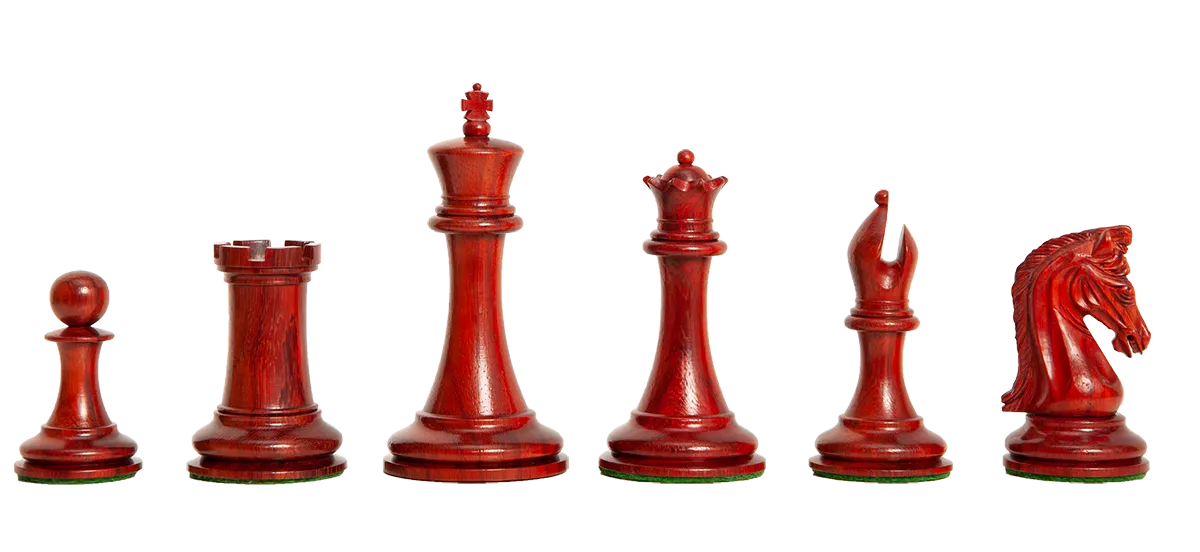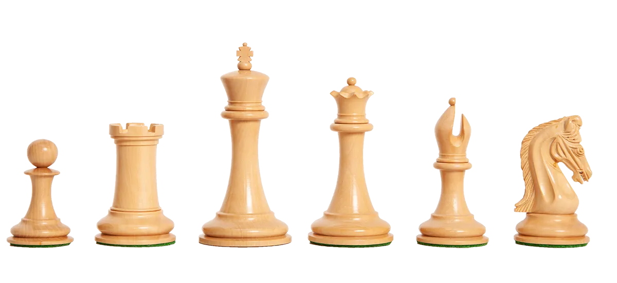 The House of Staunton is proud to offer the The Imperial Series Luxury Chess Pieces. It features a 3.75" King with a 1.75" diameter base. The Chess pieces are hand carved by our master artisans and crafted out of the highest grade woods. The Chess pieces are heavily weighted with House of Staunton English Leather basepads on the King and luxurious billiard cloth base pads on the other Chess pieces, with a beautiful finish.
