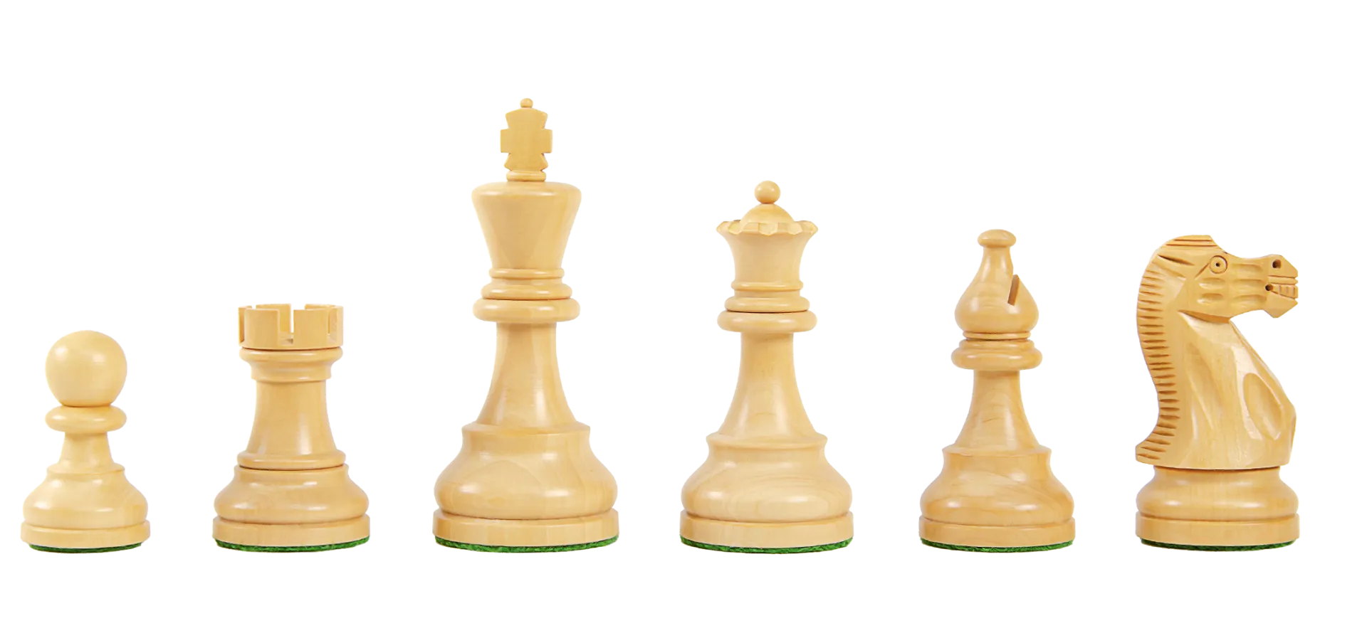 The House of Staunton is proud to offer the International Series Chess set. A full tournament-sized chess set, it features a 3.875" King with a 1.575" diameter base. The chess pieces are hand carved by our master artisans and crafted out of the highest grade woods. The chess pieces are heavily weighted with luxurious billiard cloth base pads and a beautiful finish.