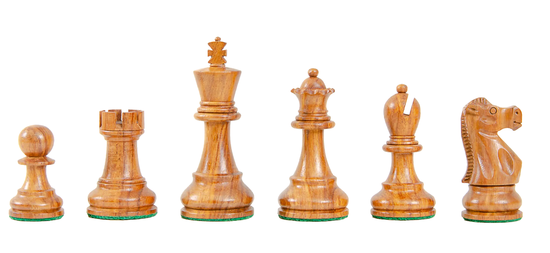 The House of Staunton is proud to offer the Legend Series Chess set. A full tournament-sized Chess set, it features a 3.75" King with a 1.5" diameter base. The Chess pieces are hand carved by our master artisans and crafted out of the highest grade woods. The Chess pieces are heavily weighted with luxurious billiard cloth base pads and a beautiful finish.