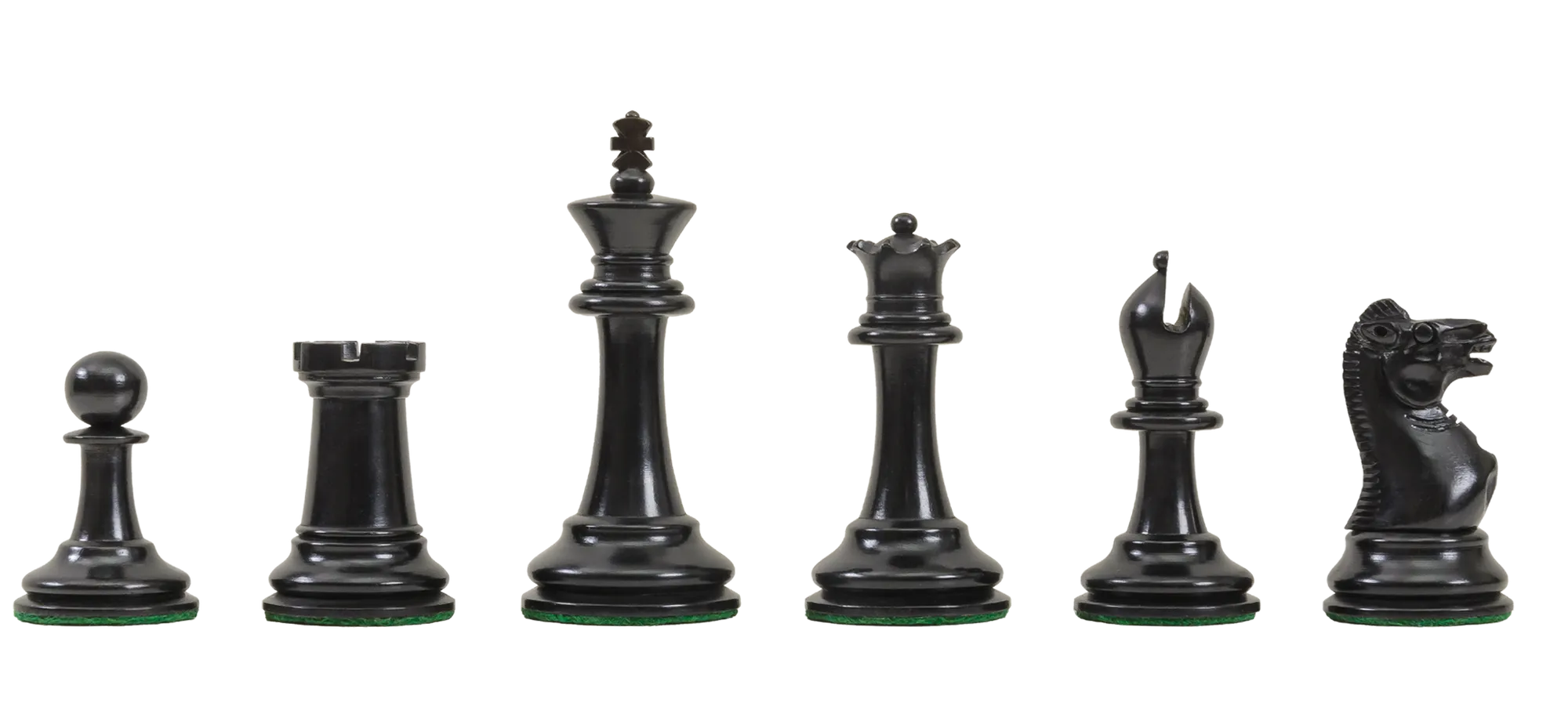 The Chess pieces are hand carved by our master artisans and crafted out of the highest grade genuine ebony and natural boxwoods. The Chess pieces are heavily weighted with luxurious billiard cloth base pads on the other Chess pieces and a beautiful finish. The design of the Anderssen Dropjaw Pattern captures the form, board presence and craftsmanship of one of the earliest Staunton Patterns from Jaques of London.