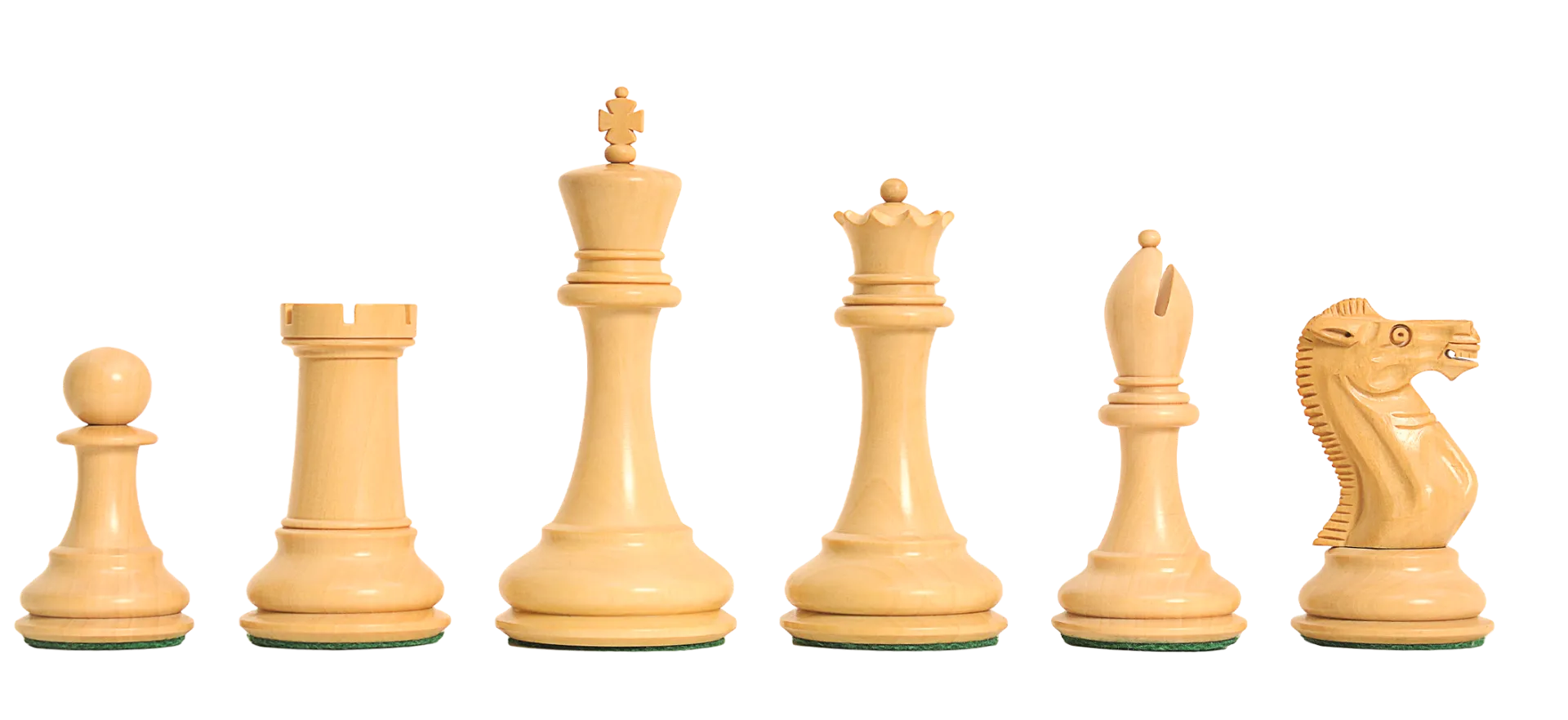 The House of Staunton is proud to offer the Marshall Series Chess set. A full club-sized Chess set, it features a 4.4" King with a 2.0" diameter base. The Chess pieces are hand carved by our master artisans and crafted out of the highest grade woods. The Chess pieces are heavily weighted with luxurious billiard cloth base pads and a beautiful finish. The design of the Marshall Series Chess set captures the form, style, and craftsmanship of the turn-of-the century Staunton pattern Chess that were produced by Jaques of London, a period that is widely regard by Chess collectors as having the finest Staunton Chess sets ever produced. The Marshall Series Chess set is the quintessential Staunton Pattern Chess set, the physical embodiment of the classical design and proportions that have made the Staunton Pattern the standard for all Chess sets.
