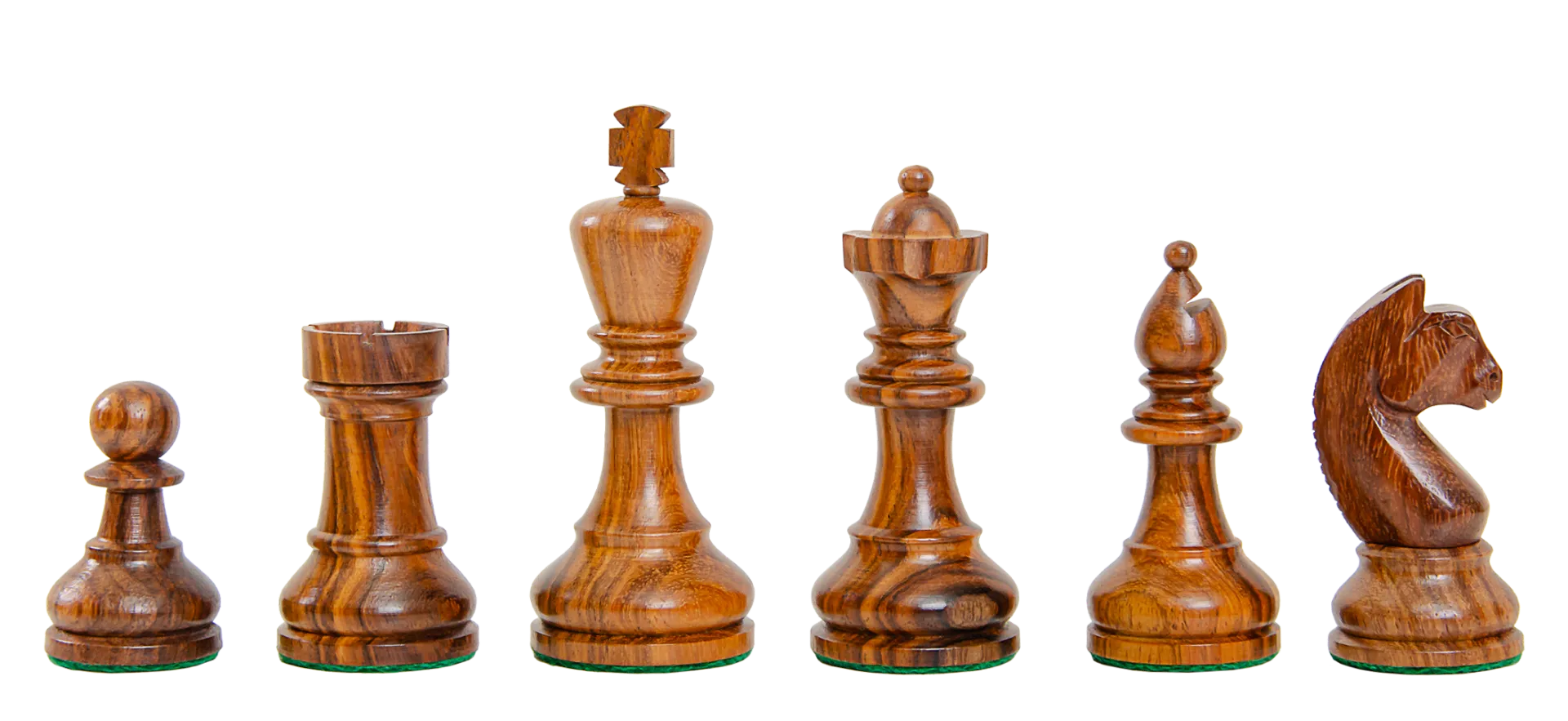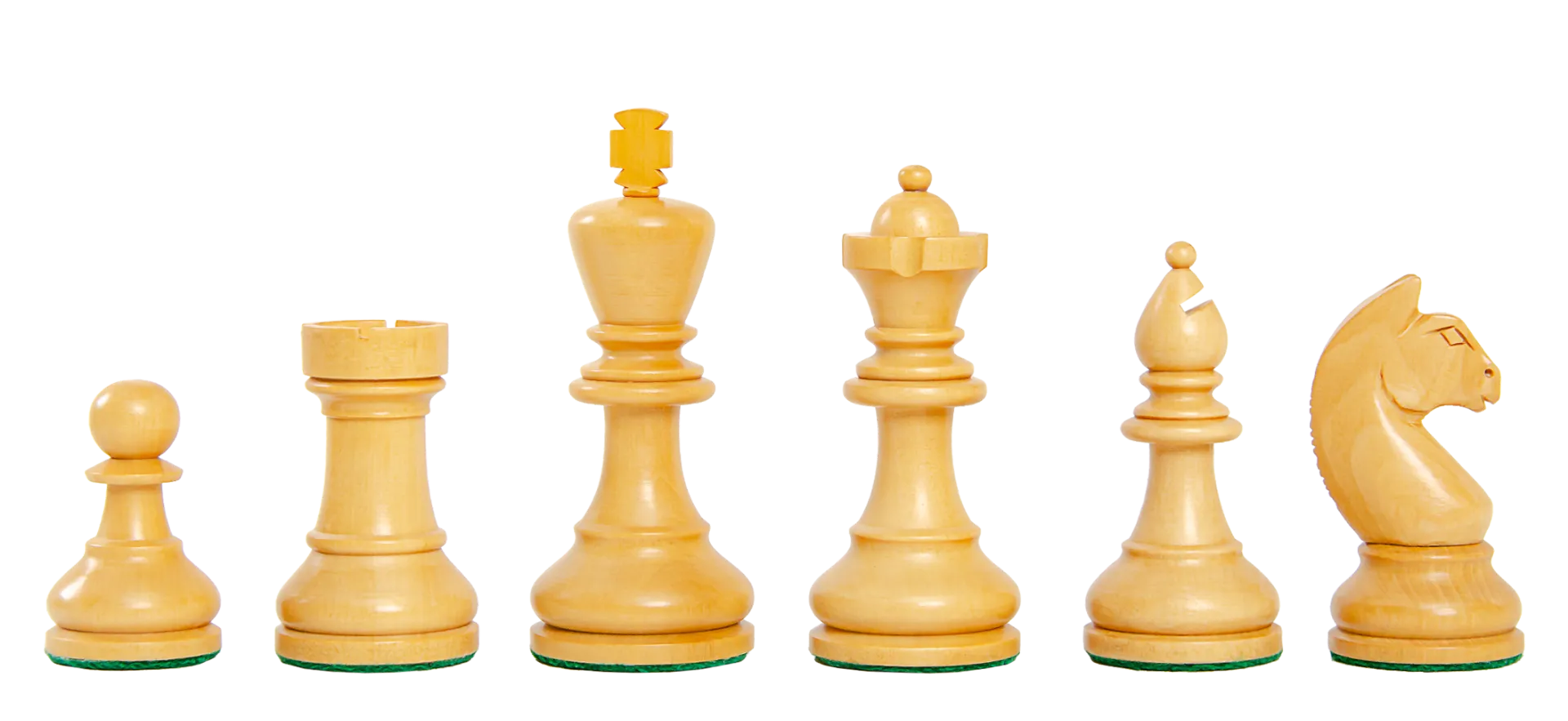 The House of Staunton is proud to offer the Modern Series Chess set. A full tournament-sized Chess set, it features a 3.75" King with a 1.5" diameter base. The Chess pieces are hand carved by our master artisans and crafted out of the highest grade woods. The Chess pieces are heavily weighted with luxurious billiard cloth base pads and a beautiful finish.