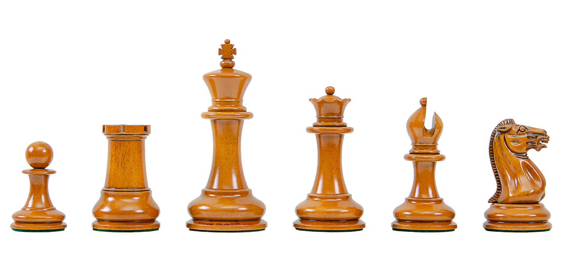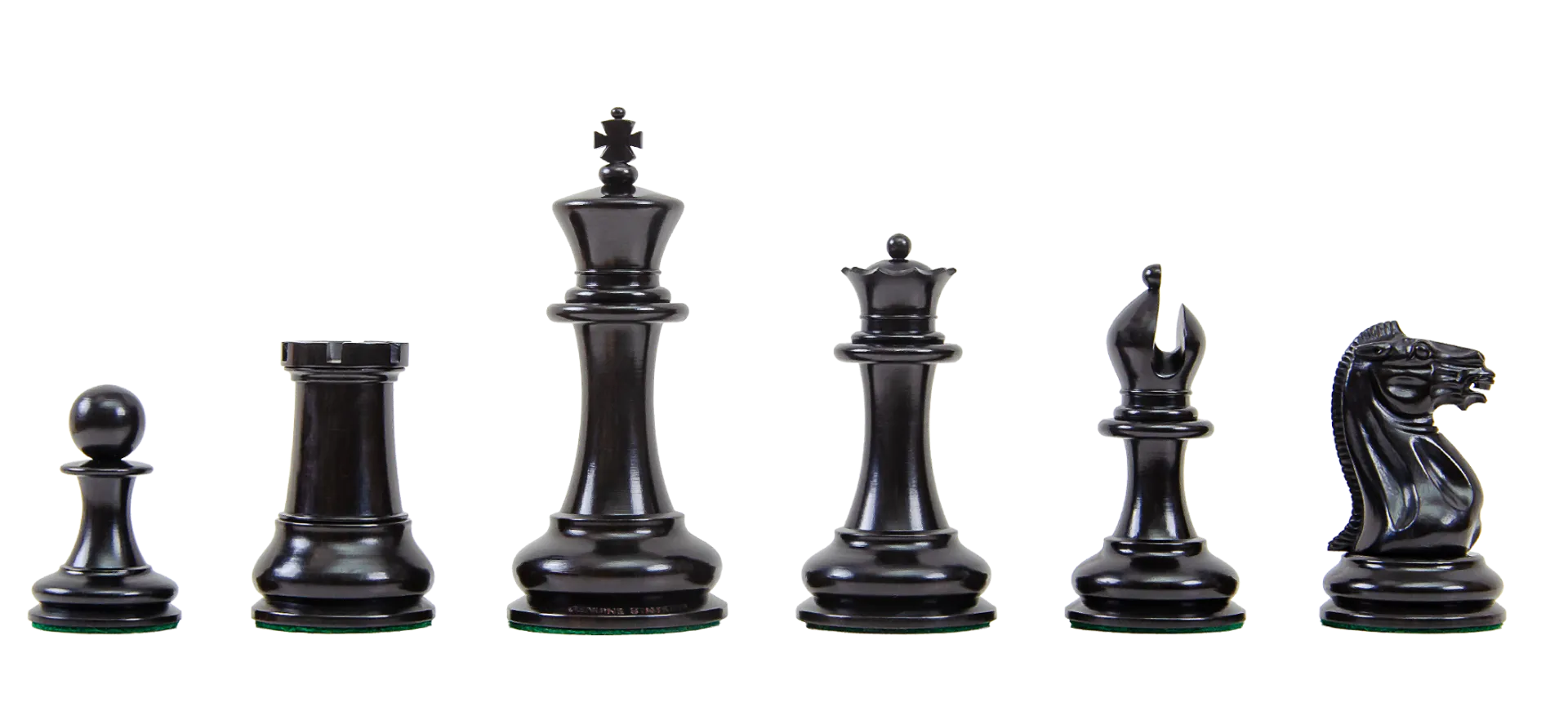 To pamper you, The House of Staunton is proud to offer the The Original 1849 Vintage Series Chess Pieces Luxury Chess set. This full-tournament sized Chess set features. A full club-sized Chess set, it features a 4.4" King with a 1.8" diameter base. The Chess pieces are hand carved by our master artisans and crafted out of the highest grade woods. The Chess pieces are heavily weighted with embossed English Leather base pads under the Kings, luxurious billiard cloth base pads on the other Chess pieces.
