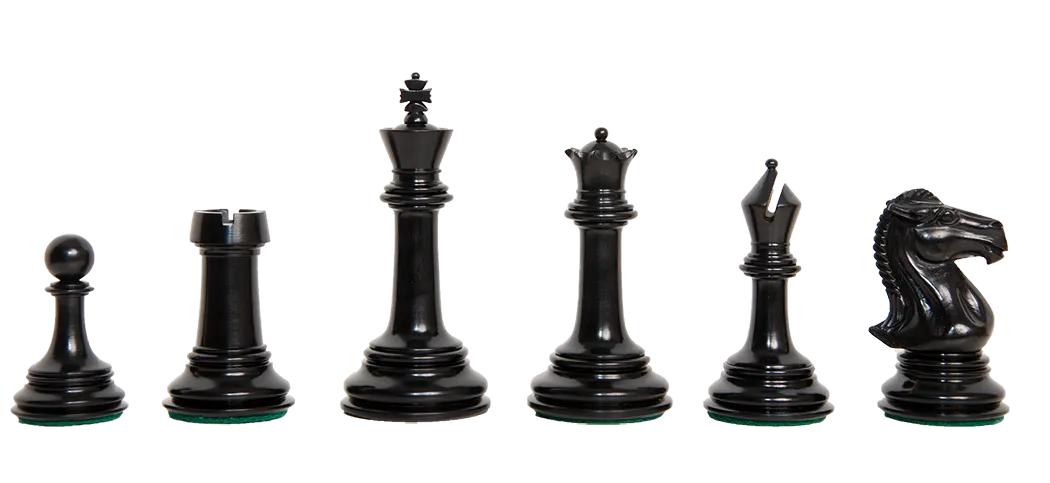 The Kings Feature English Leather Embossed with House of Staunton Logo. All Other Pieces Feature Luxurious Green Baize