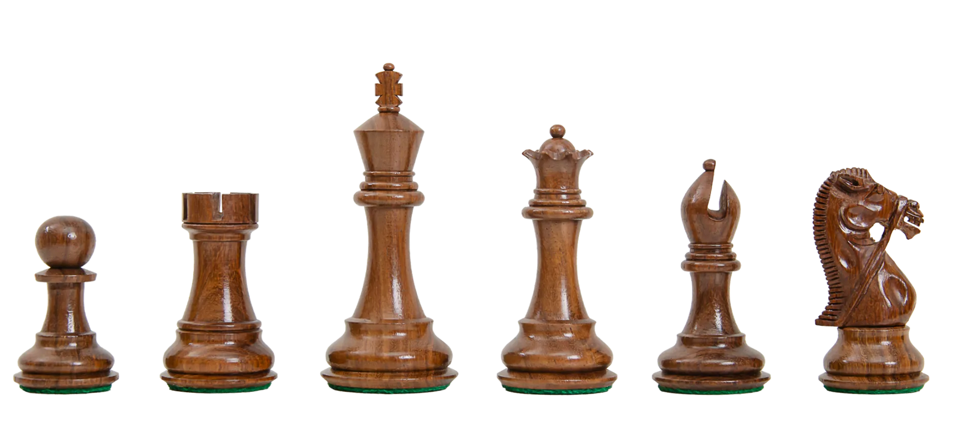 The House of Staunton is proud to offer the Supreme Bridle Series Chess set. It features a 4.0" King with a 1.75" diameter base. The Chess pieces are hand carved by our master artisans and crafted out of the highest grade woods. The Chess pieces are heavily weighted with luxurious billiard cloth base pads and a beautiful finish.