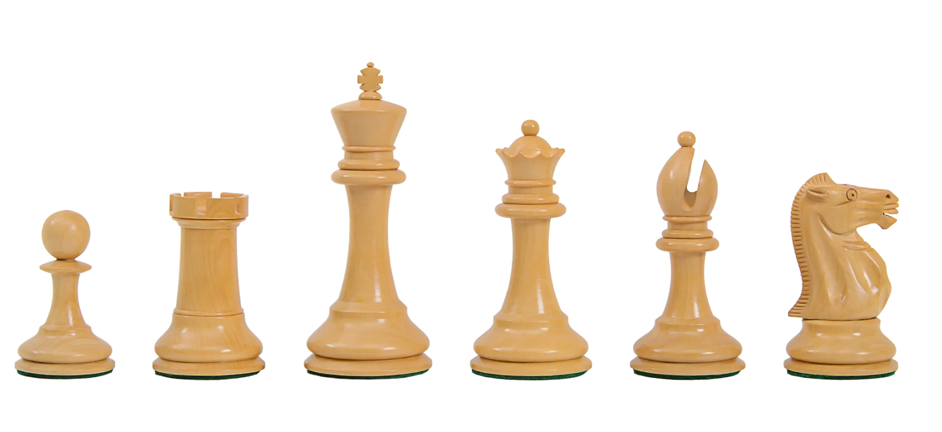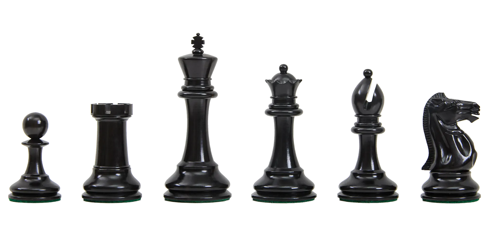 To pamper you, The House of Staunton is proud to offer the Vigilant Series Luxury Chess set. This full-tournament sized Chess set features. A full tournament-sized Chess set, it features a 4" King with a 1.7" diameter base. The Chess pieces are hand carved by our master artisans and crafted out of the highest grade woods. The Chess pieces are heavily weighted with gold embossed English Leather base pads under the Kings, luxurious billiard cloth base pads on the other Chess pieces and a beautiful finish.